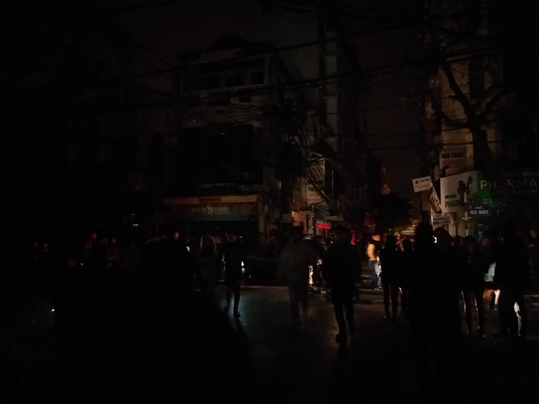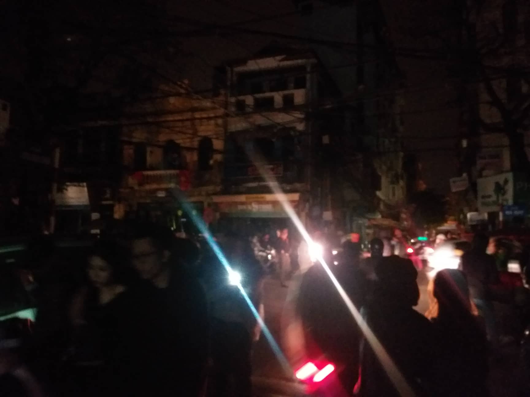 Người dân phố Lương Ngọc Quyến ngơ ngác vì bị mất điện đột ngột.