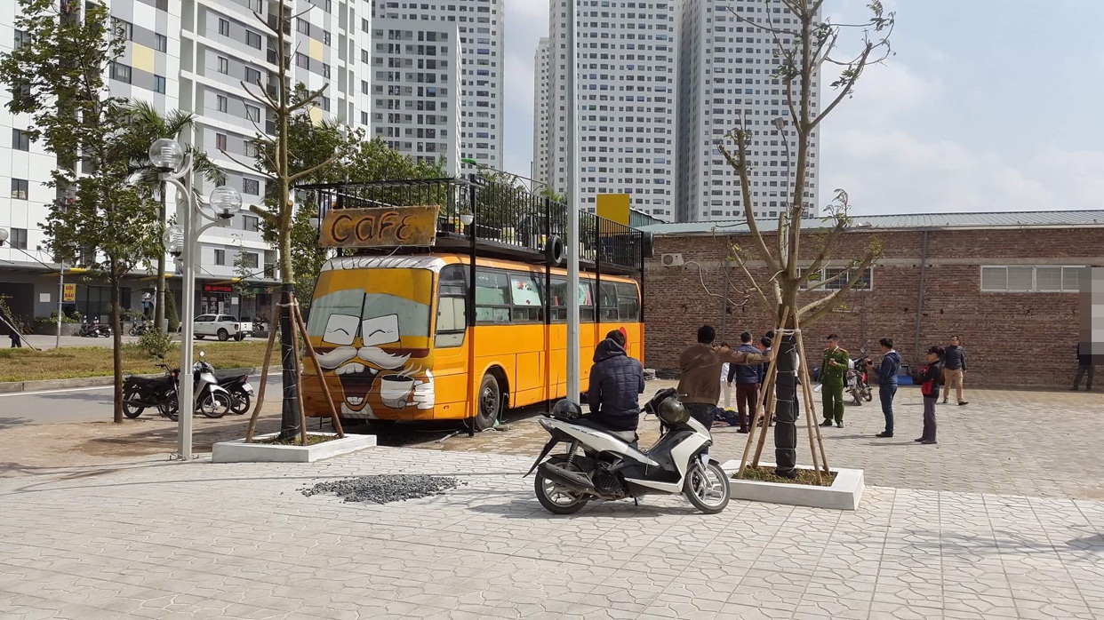 Tại quán bus cafe trong khuôn viên khu đô thị.