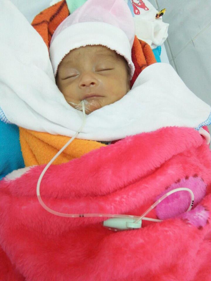 Ngày 26/2/2018, chị Vui sinh con tại bệnh viện Phụ sản Thanh Hóa, khi thai nhi mới được 29 tuần tuổi. “Con trai đầu nặng 1,2 kg, con gái thứ 2 Vũ Ngọc Quỳnh nặng 1 kg và con út Vũ Ngọc Mai nặng 0,7 kg. Sau sinh, các con của tôi được chuyển sang bệnh viện Nhi tỉnh Thanh Hóa. Vì các con sinh non, không có sức đề kháng, không ăn được sữa mẹ nên cả 3 đều bị nhiễm trùng máu”, anh Thành kể.