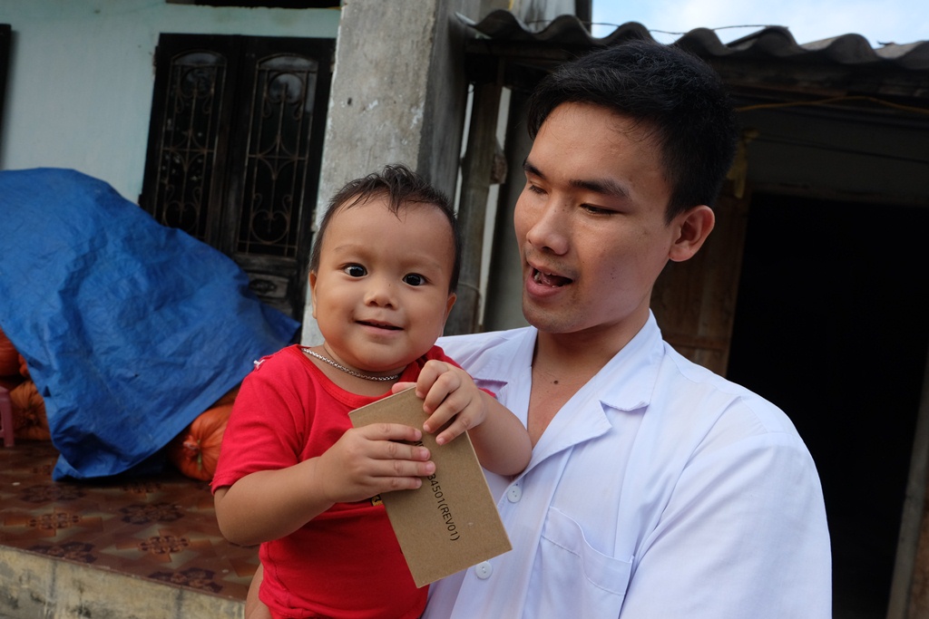 Mỗi tháng anh Chất lại dành một hai ngày cuối tuần tranh thủ về thăm vợ con, mẹ già rồi lại lên TP Ninh Bình tiếp tục công việc. Anh không biết mặt con, chỉ nhận biết qua giọng nói.