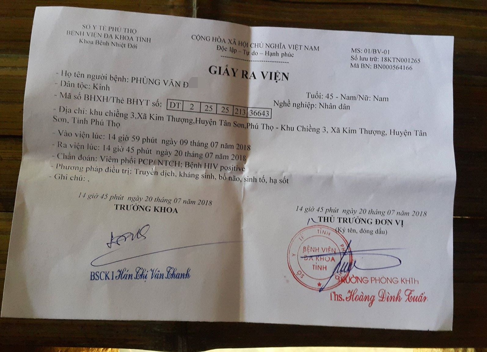 Cùng nỗi buồn nhiễm HIV, anh P.V.Đ., (45 tuổi, ở xã Kim Thượng), bác của cháu H.N.Q. cho biết, anh được khoa Bệnh nhiệt đới (Bệnh viện đa khoa tỉnh Phú Thọ) chẩn đoán bị viêm phổi PCP/NTCH, HIV Positive.