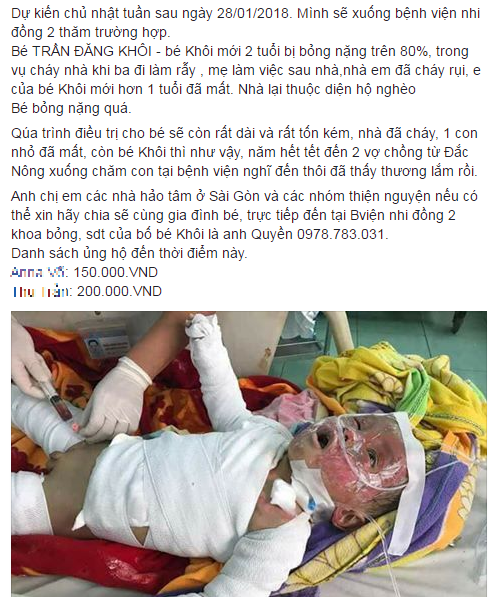 Theo thông tin ban đầu, bé trai tên Trần Đăng Khôi - nạn nhân trong vụ cháy nhà khi ba đi làm rẫy, mẹ làm việc sau nhà. Bên cạnh đó, căn nhà của em đã bị ngọn lửa thiêu rụi, em gái của Khôi mới hơn 1 tuổi đã tử vong sau vụ cháy.
