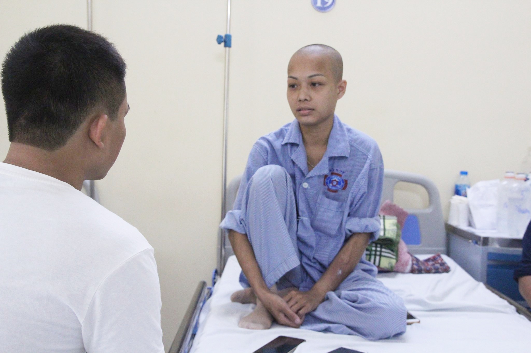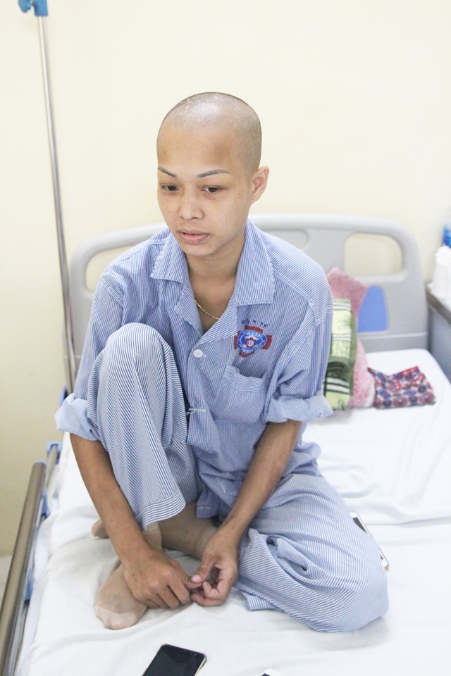 Ngồi trên giường bệnh, dáng người gầy gò, đầu trọc, đôi mắt thâm quầng, chị Thanh kể, từ khi phát hiện ra bệnh khiến chị rất buồn và không đêm nào trọn giấc vì những cơn đau hành hạ. Thanh năm nay 26 tuổi, đã lập gia đình và có 2 con nhỏ, nhưng vì những bất đồng trong cuộc sống nên 3 năm trước cô và chồng ra toà ly hôn.