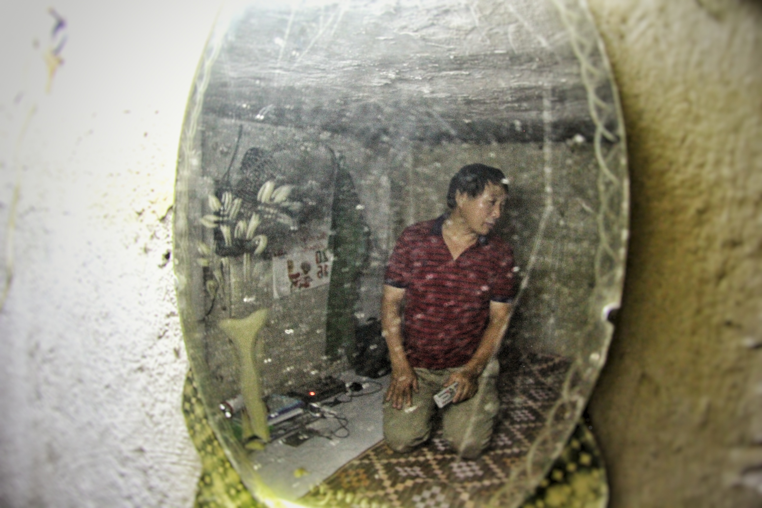 Trong căn nhà siêu nhỏ tăm tối và xập xệ, chiếc TV to đã chiếm một góc diện tích của căn nhà, góc còn lại để đủ trải một manh chiếu và các vật dụng cá nhân của chủ nhân ngôi nhà. Nhìn quanh ngôi nhà “bé như lỗ mũi”, chắc khó có thể bắt ai đó tin được rằng người đàn ông này đã “chung sống với lũ” như thế suốt gần 60 năm qua.