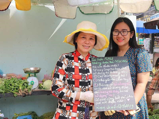 Khi cùng những chủ sạp hàng đặt tấm bảng “không bán túi nylon”, Quỳnh Hương mong muốn cùng các chủ sạp hàng đánh động, truyền cảm hứng để mọi người hành động vì lối sống xanh.