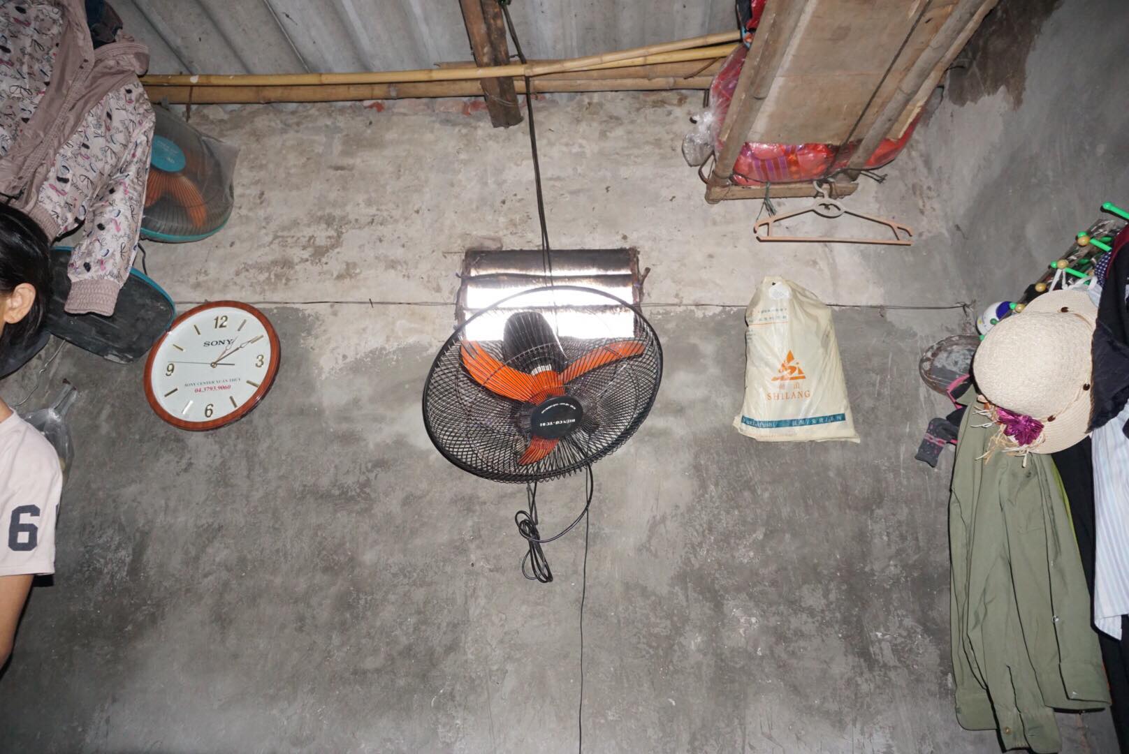Cả gian nhà trọ của hai bà có một chiếc quạt luôn hoạt động hết công suất.
