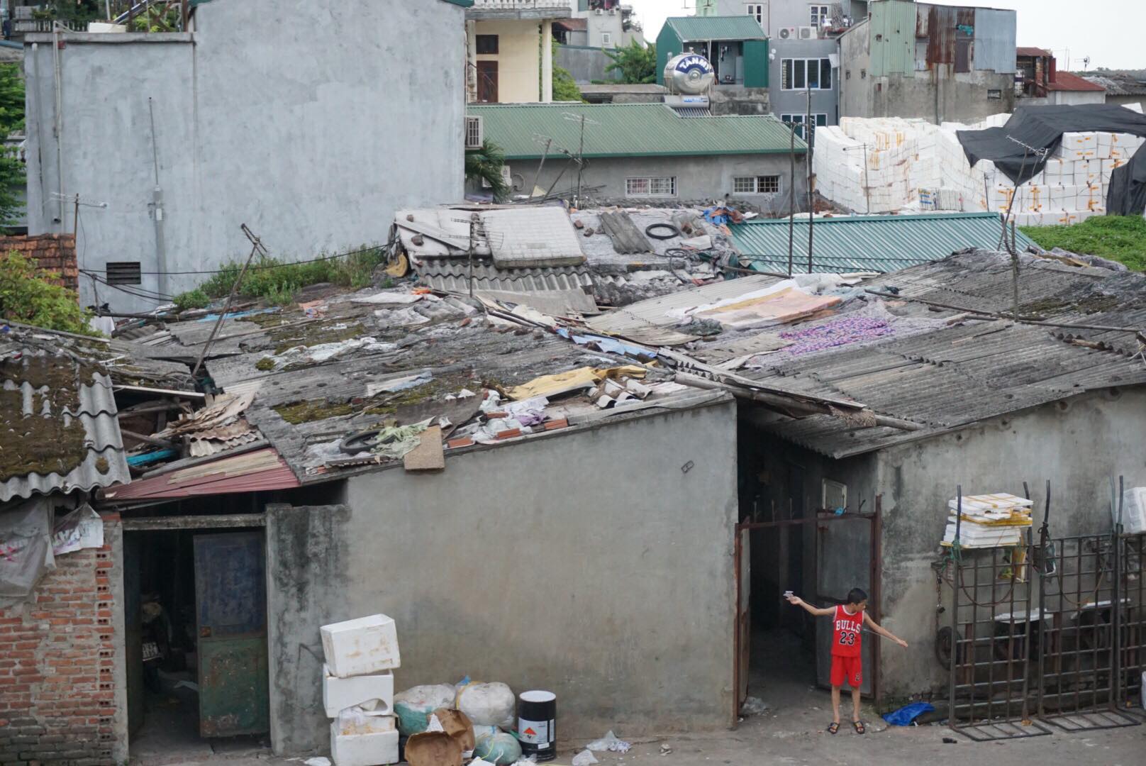Cạnh dãy trọ của bà Trải, khu phòng trọ của anh Hồng (quê Hà Nam) cũng chẳng khác là bao, cũng là những căn nhà lụp xụp, lợp bằng pro ximăng, thấp lẹt đẹt, ẩm ướt.
