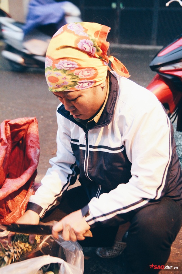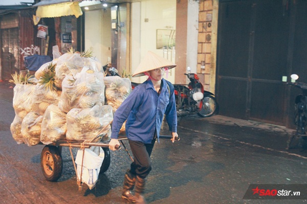 Những nữ cửu vạn đến từ các tỉnh lân cận quanh Hà Nội như Vĩnh Phúc, Tuyên Quang, Nam Định, Hưng Yên… Họ làm công việc bốc vác thuê - vốn mặc định dành cho những đấng mày râu.Tuy vất vả mệt nhọc nhưng tiền công cũng không được là bao. Vận chuyển mỗi bao dứa lớn khoảng 20kg được trả với giá 2 nghìn đồng. Một xe dứa khoảng 15 bao mới kiếm được 30 nghìn đồng.