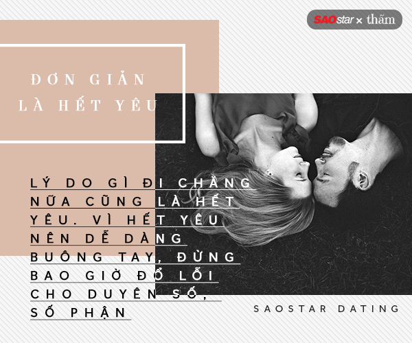 2. Lý do gì đi chăng nữa cũng là hết yêu. Vì hết yêu, tình yêu không mãnh liệt mà lạc mất nhau. Và cũng vì hết yêu nên dễ dàng buông tay, đừng bao giờ đổ lỗi cho duyên số, số phận, cũng bởi vì tình yêu không đủ lớn mà thôi.