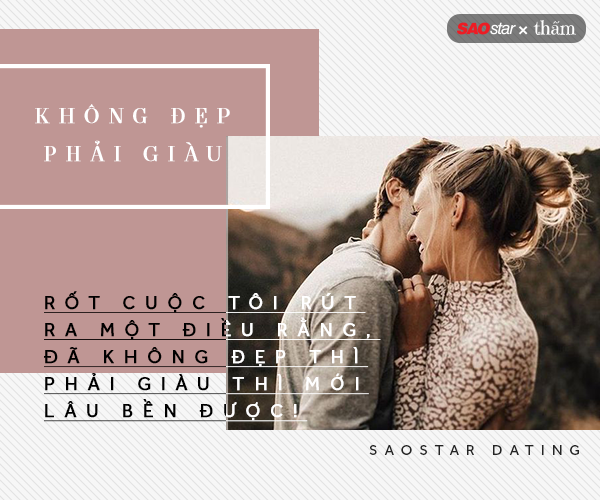 6. Cô ấy bảo tôi nhạt, không còn tình cảm với tôi nữa. Nhưng quyết định đó dù đúng hay sai, cảm giác cuối cùng tôi vẫn như người có lỗi. Rốt cuộc tôi rút ra một điều rằng, đã không đẹp thì phải giàu thì mới lâu bền được!