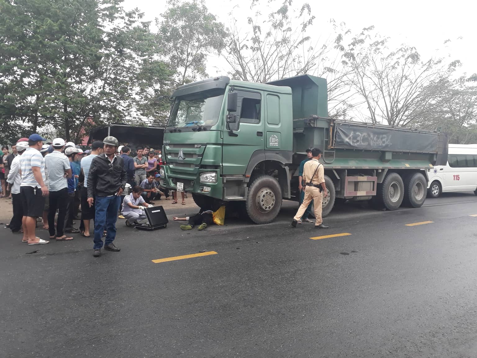 Vụ tai nạn khiến xe máy bị kéo lê 5 mét, anh Phát bị xe tải cán tử vong tại chỗ.