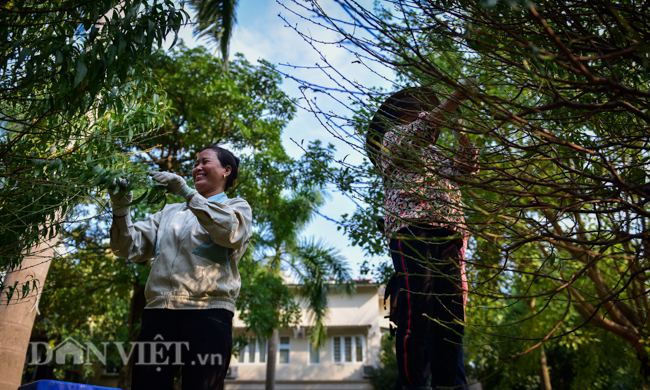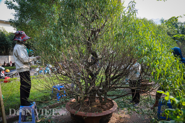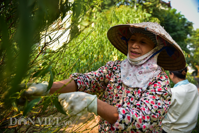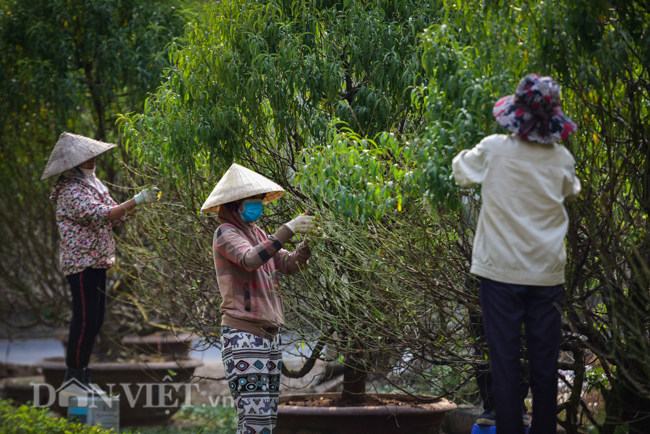Được biết, những người làm nghề tuốt lá đào thường là sinh viên, công nhân sống quanh khu vực làng đào Nhật Tân. Cây đào đã được tuốt xong lá đã ra dáng hơn và chỉ chờ ngày bung nụ đón Tết.