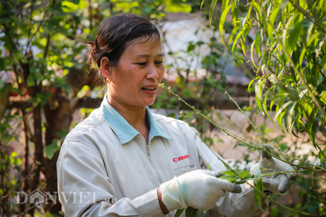 Nhân dịp cuối năm nhiều người tranh thủ nhận tuốt lá đào cho nhiều chủ vườn, mỗi ngày làm 8 tiếng có thu nhập khoảng 200 nghìn đồng.