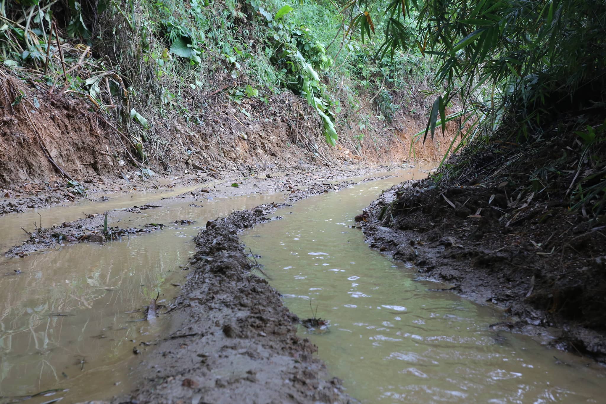 Hình ảnh nạo vét khu vực suối chảy vào sông Đà
