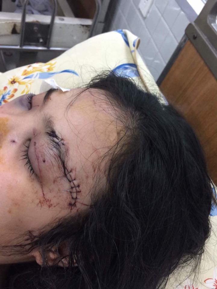 Tr. bị thương tích nặng, đứt tai, vỡ giác mạc mắt trái, đầu và chân mày phải khâu nhiều mũi, nhập viện khẩn cấp. Từ một nữ sinh xinh xắn, giờ đây gương mặt Tr. trở nên biến dạng và phải chịu rất nhiều đau đớn, hoảng sợ.
