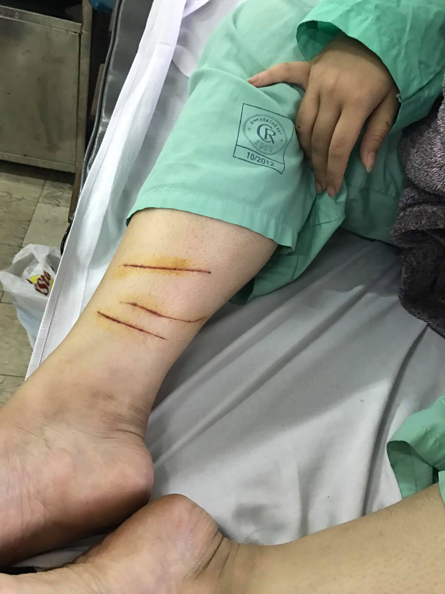 Cận cảnh những thương tật nặng nề mà nhóm côn đồ gây ra cho em Tr.