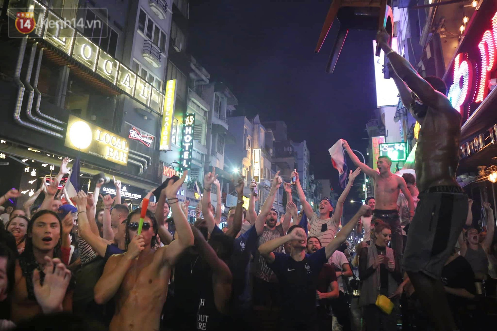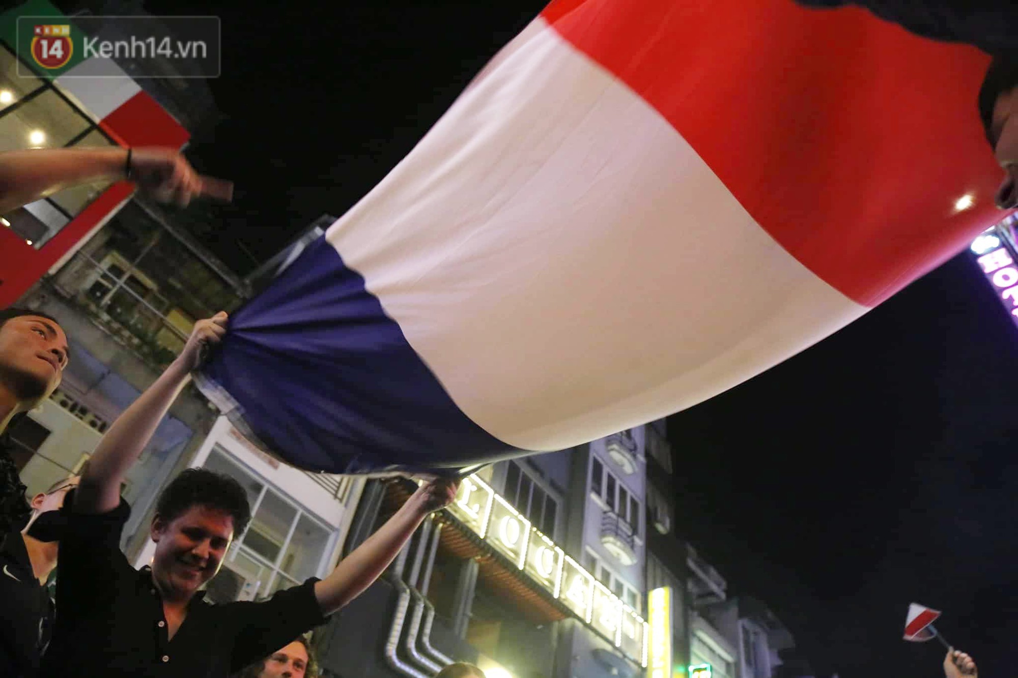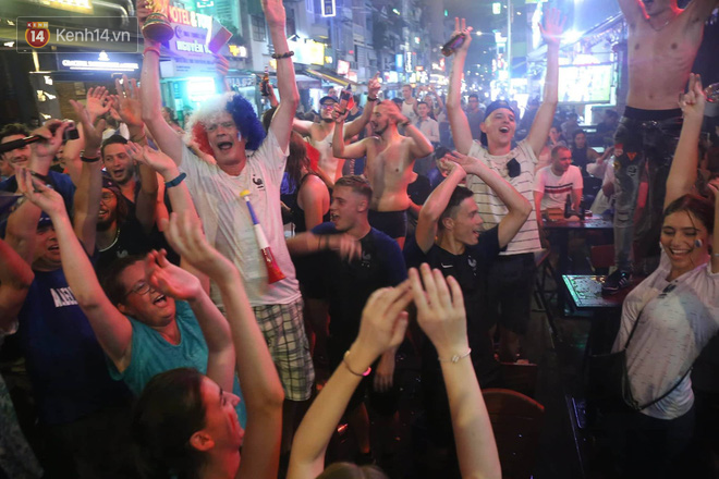 Hoà vào không khí World Cup trên khắp hành tinh, hàng trăm cổ động viên người Pháp đã có mặt tại phố Tây Bùi Viện dõi theo từng phút của trận đấu. Giây phút đội nhà bước lên đài vinh quang, họ đã xác định: đêm nay sẽ là một đêm không ngủ với bóng đá.