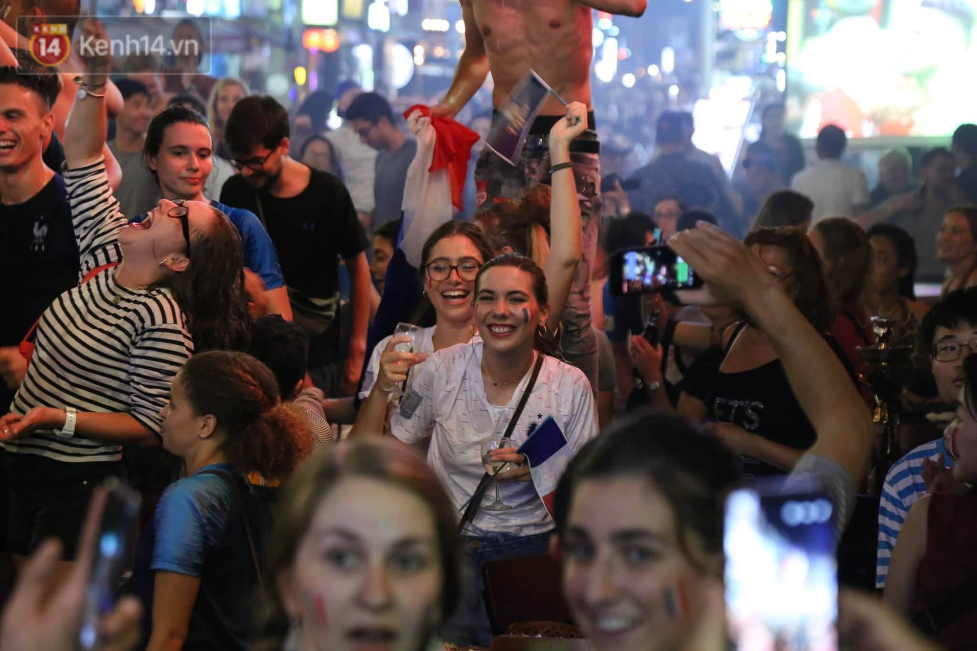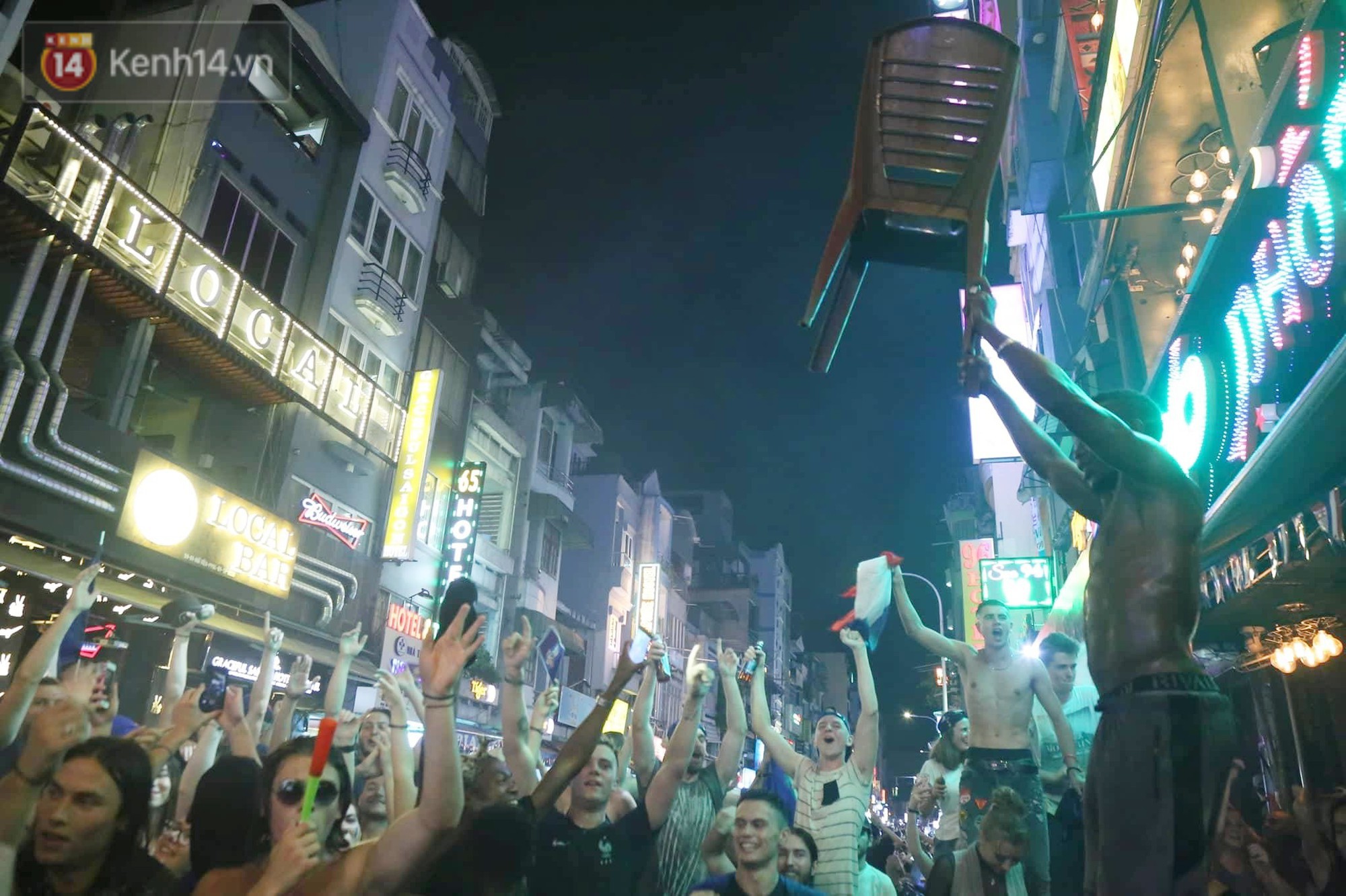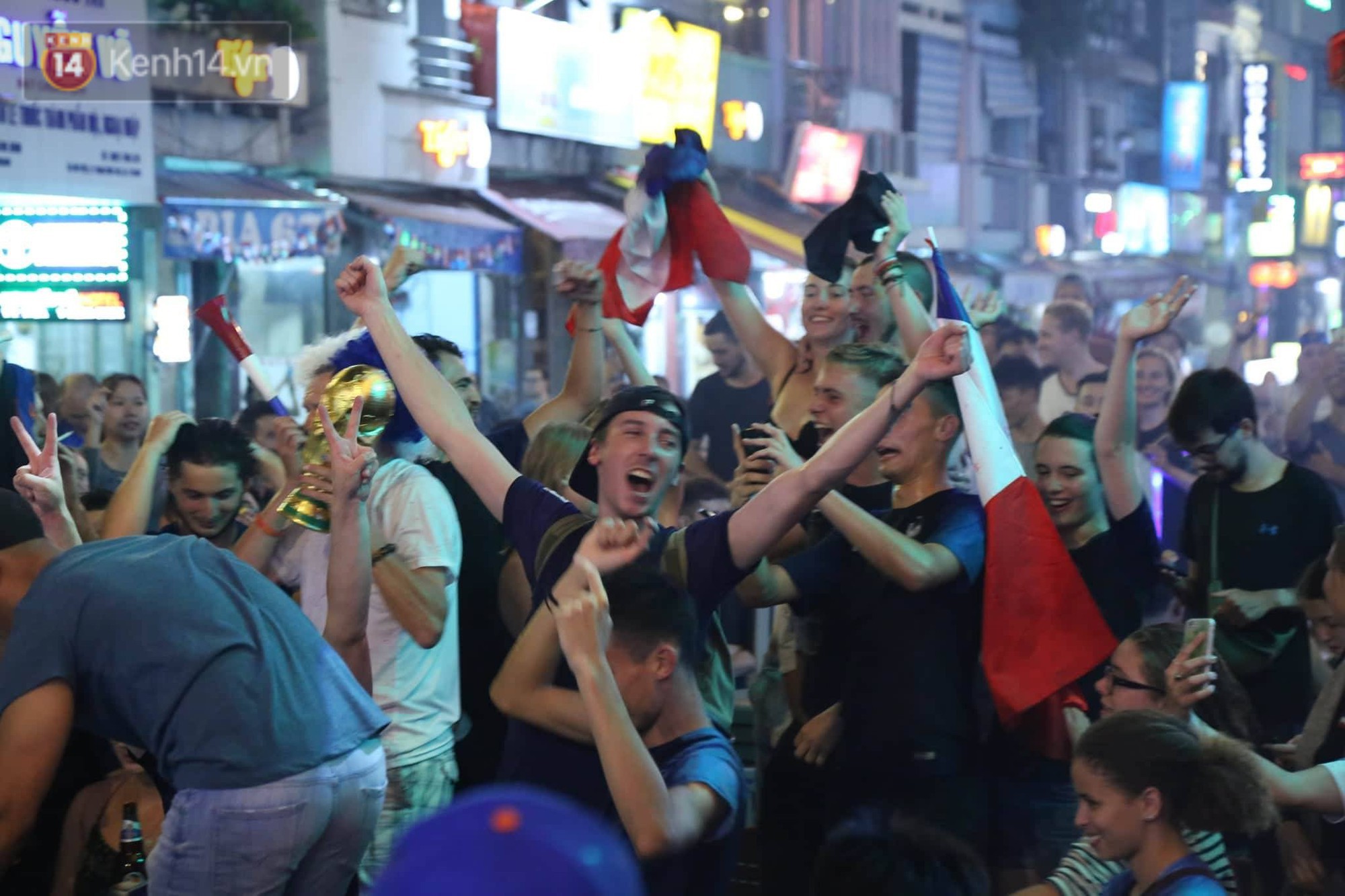 Hoà vào không khí World Cup trên khắp hành tinh, hàng trăm cổ động viên người Pháp đã có mặt tại phố Tây Bùi Viện dõi theo từng phút của trận đấu. Giây phút đội nhà bước lên đài vinh quang, họ đã xác định: đêm nay sẽ là một đêm không ngủ với bóng đá.