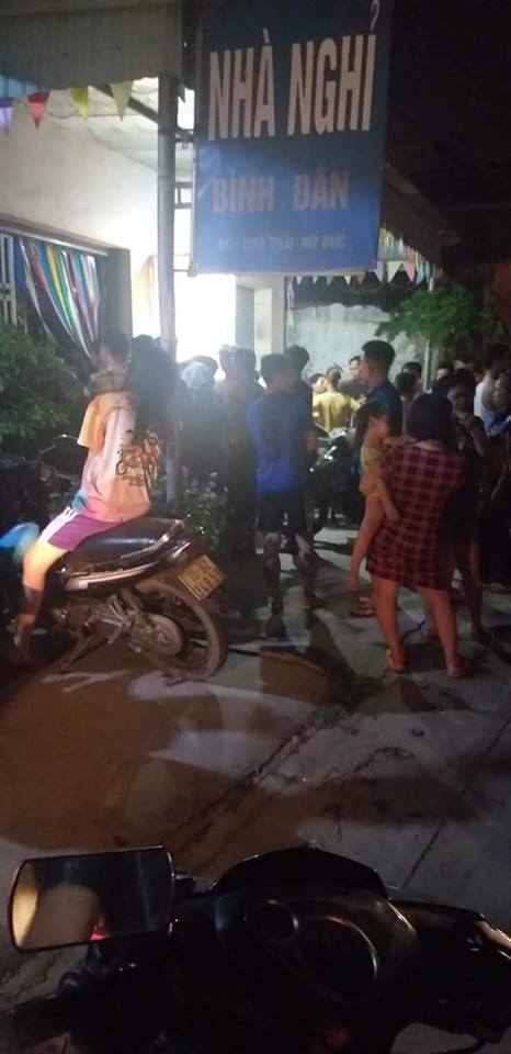 Rất đông người dân có mặt tại nhà nghỉ sau khi phát hiện sự việc.