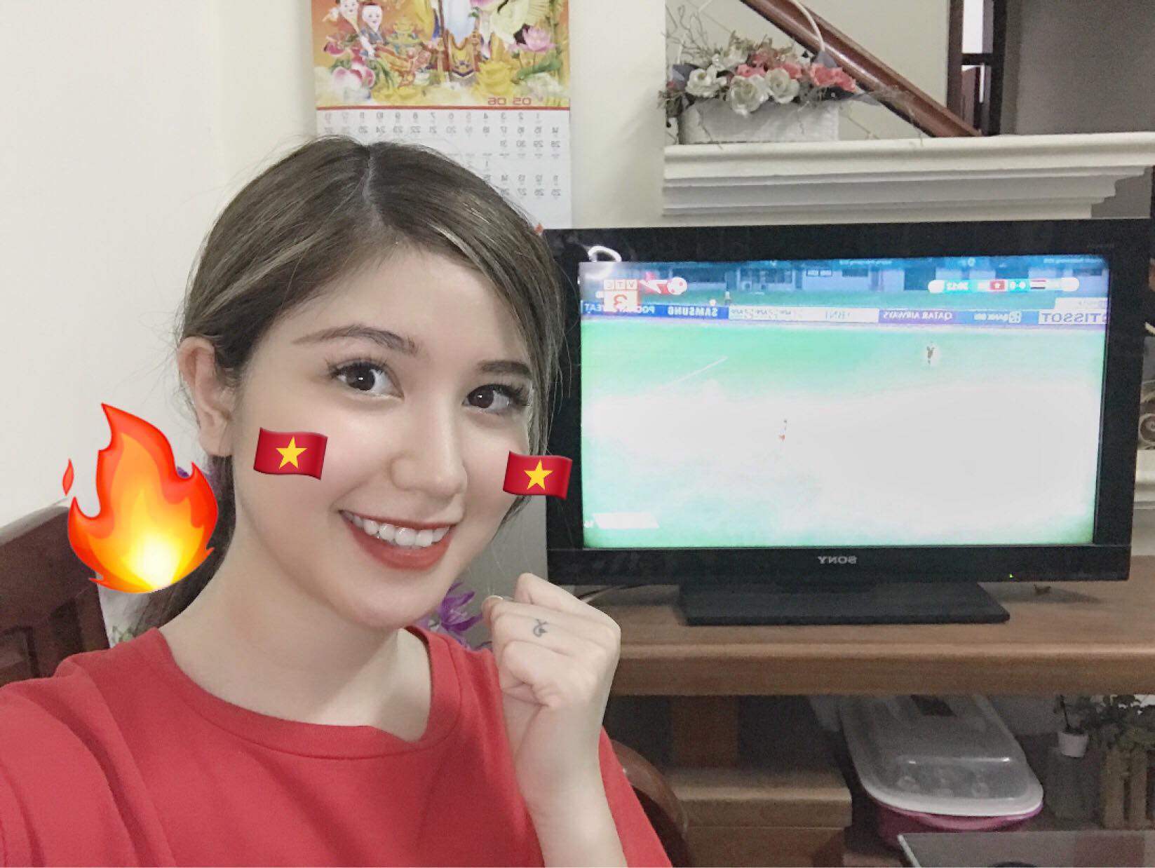 Hot girl An Japan khoe tinh thần cổ vũ cho đội tuyển Việt Nam tại nhà.
