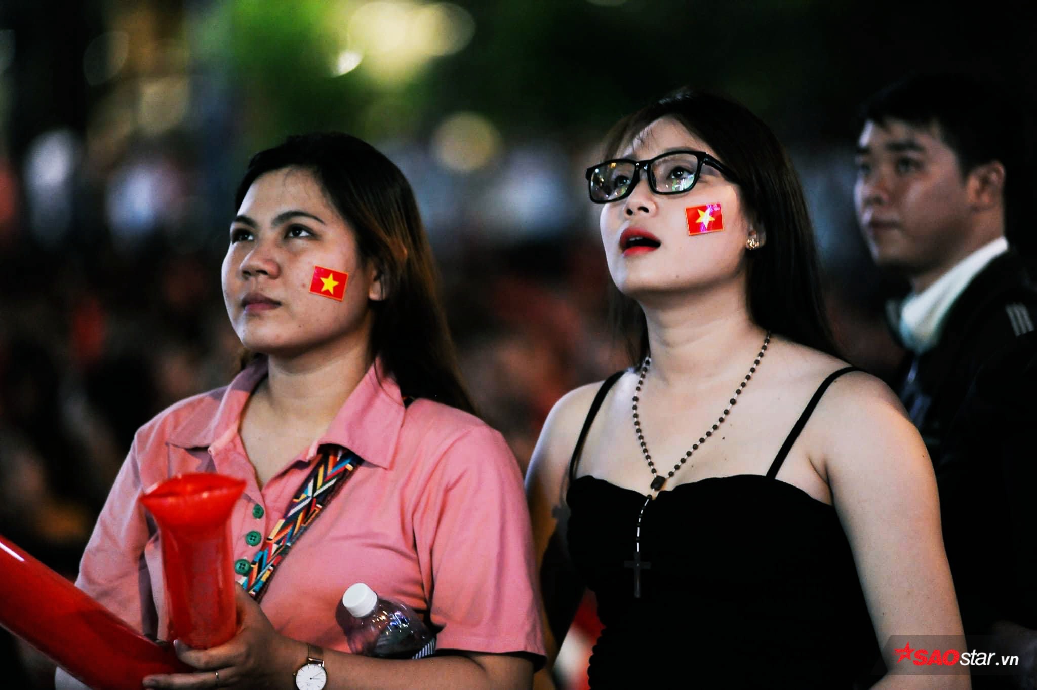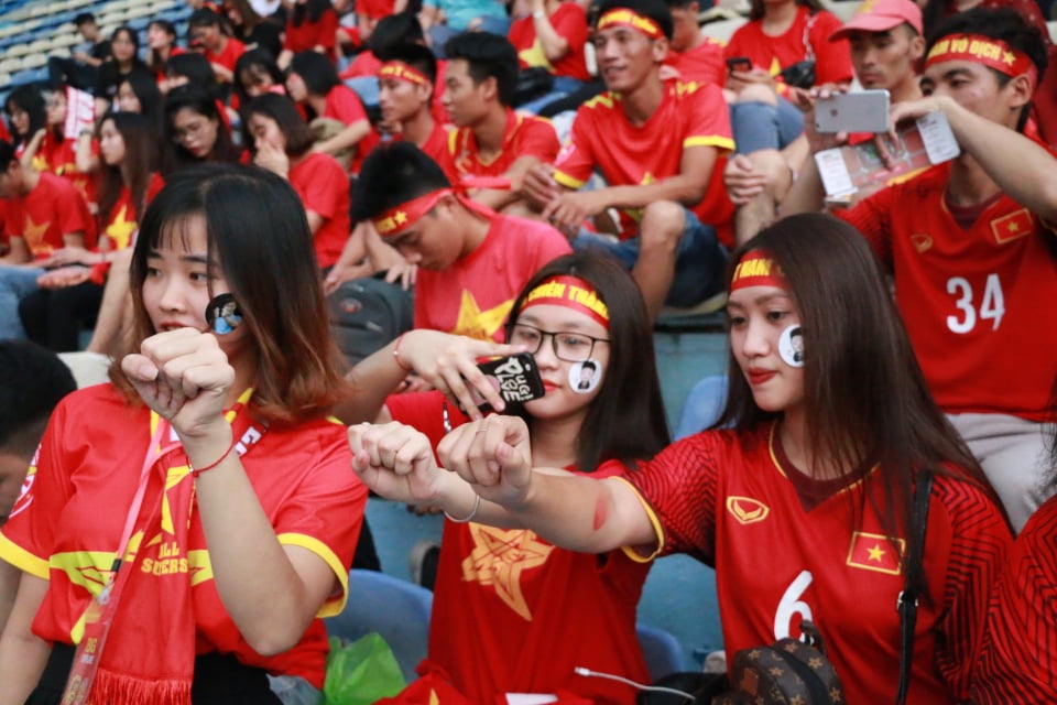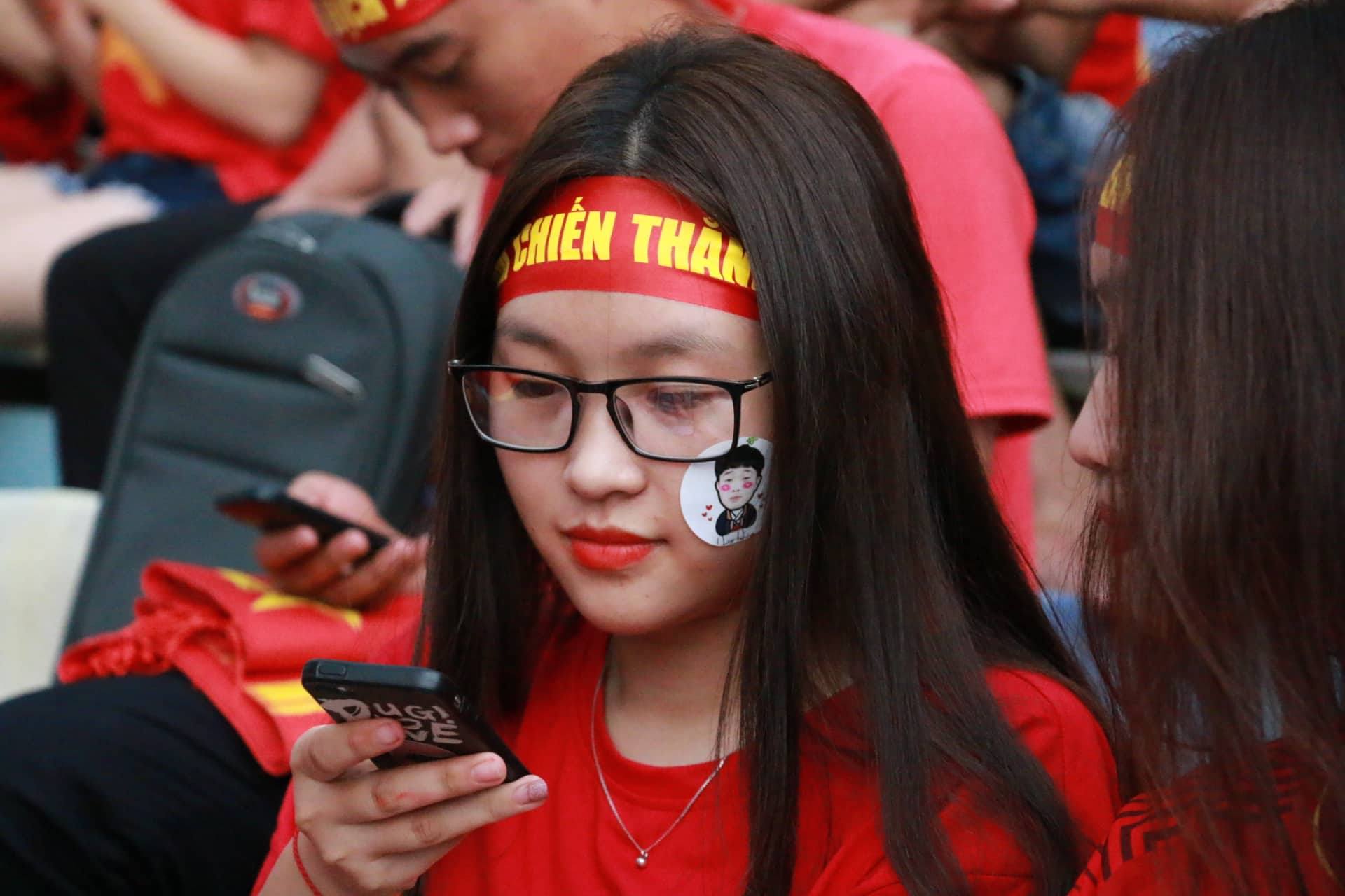Trên khán đài nhiều cổ động viên nữ ghi lại khoảnh khắc đáng nhớ.