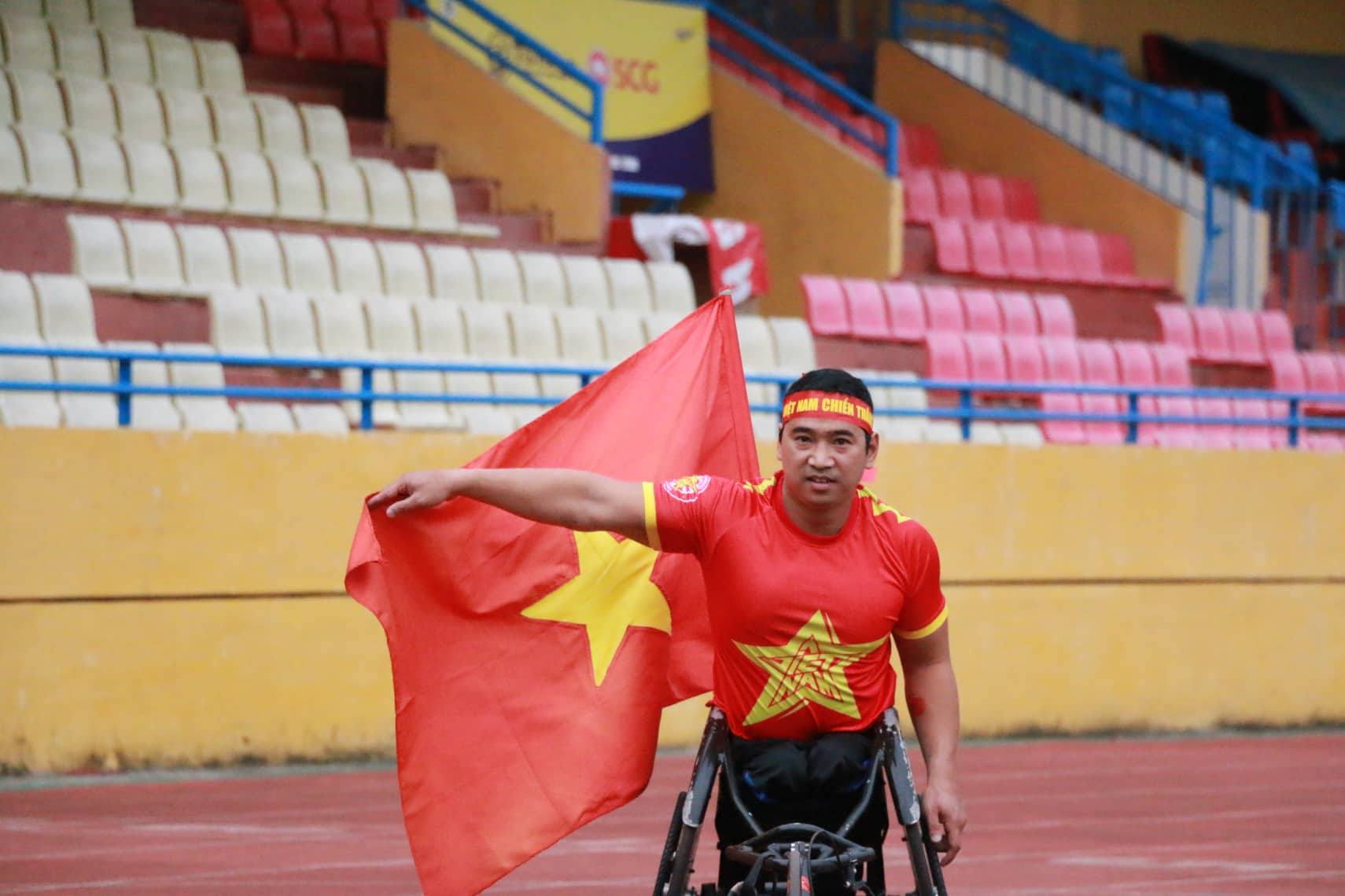 Anh Trần Phúc Đạt, hội khuyết tật Hà Nội (quê ở Hưng Yên) đến sân từ rất sớm để cổ vũ cho đội tuyển Việt Nam.