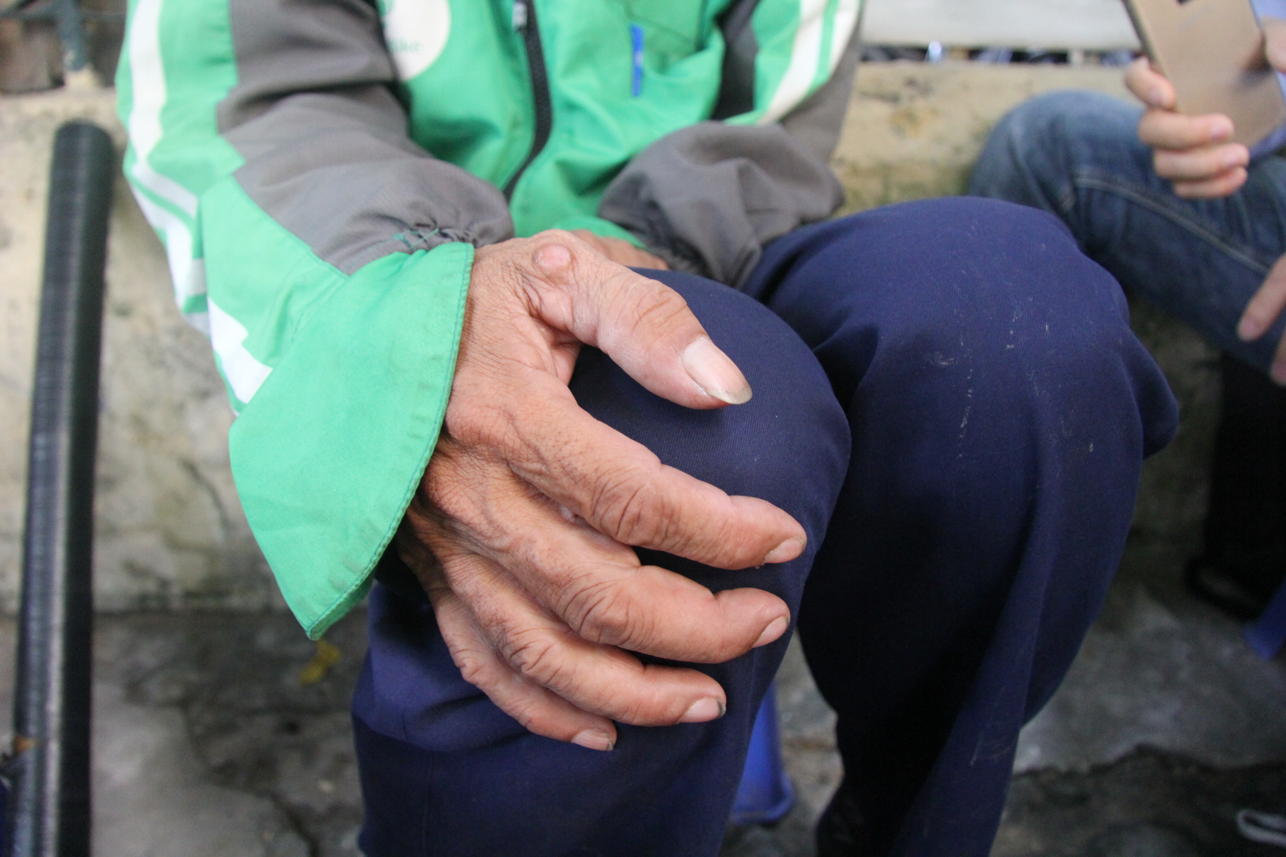 Đôi bàn tay chai sạn gió sương của người tài xế này.