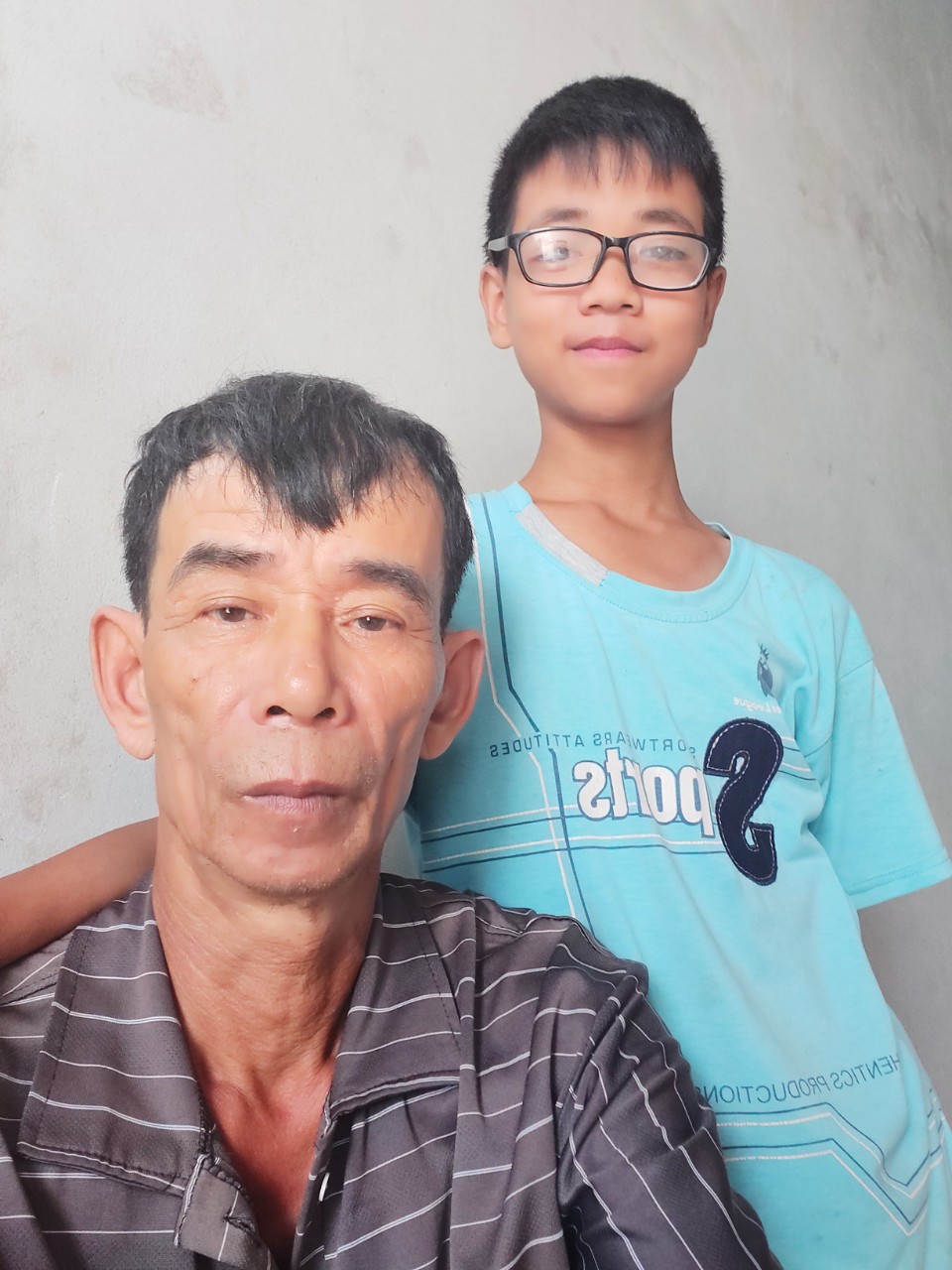 Bức ảnh ông Vệt chụp cùng người con trai mắc bệnh tim bẩm sinh. Dù đã 15 tuổi nhưng Ánh nặng chưa đầy 30kg.