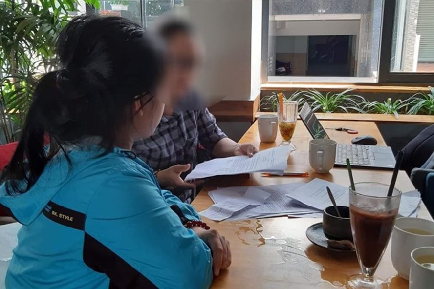 Chị Q. kể lại phóng viên sự việc đã xảy ra. Ảnh: báo Người lao động.