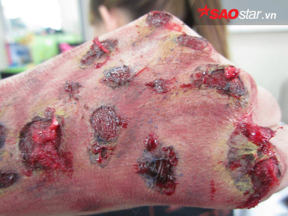 Bàn tay đã qua sự hóa trang của chị Dung.