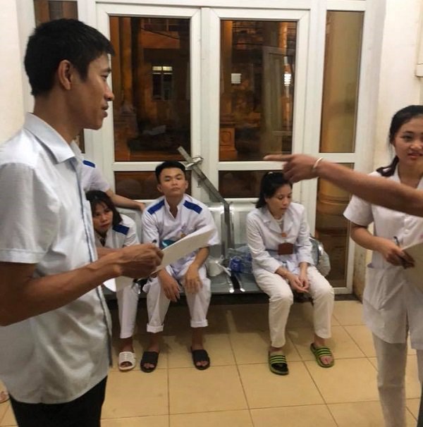 Trong phòng chờ sinh, bác sĩ có tiêm truyền cho thai phụ thuốc kích đẻ. Nằm trong phòng chờ đến 5 giờ chiều, gia đình bệnh nhân thấy thai phụ có biểu hiện nôn ọe nên đã đẩy cửa vào. Tại đây, người nhà vô cùng hốt hoảng khi thấy thai phụ mặt mày tím tái, nôn nhiều và liên tục nghiến răng, sùi bọt mép.