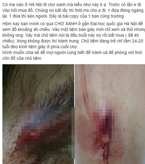 Trong status, Trang Love Lee cho biết cô đã chia sẻ lại thông tin này từ một người bạn cùng trường. Tuy nhiên chính bản thân Trang Love Lee cũng đã gặp tình cảnh tương tự khi có lần đi chợ Xanh vào hỏi mua đồ, sau khi thử không ưng ý định bỏ đi thì chủ hàng bắt ép khách hàng phải lấy. Thậm chí “1 người đứng ngáng, 1 người thì kéo, bắt ép khách hàng”.