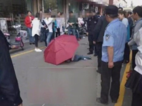 Hiện trường vụ nhảy từ tầng 10 của cậu bé ở TP Tô Châu. Ảnh: Shanghaiist