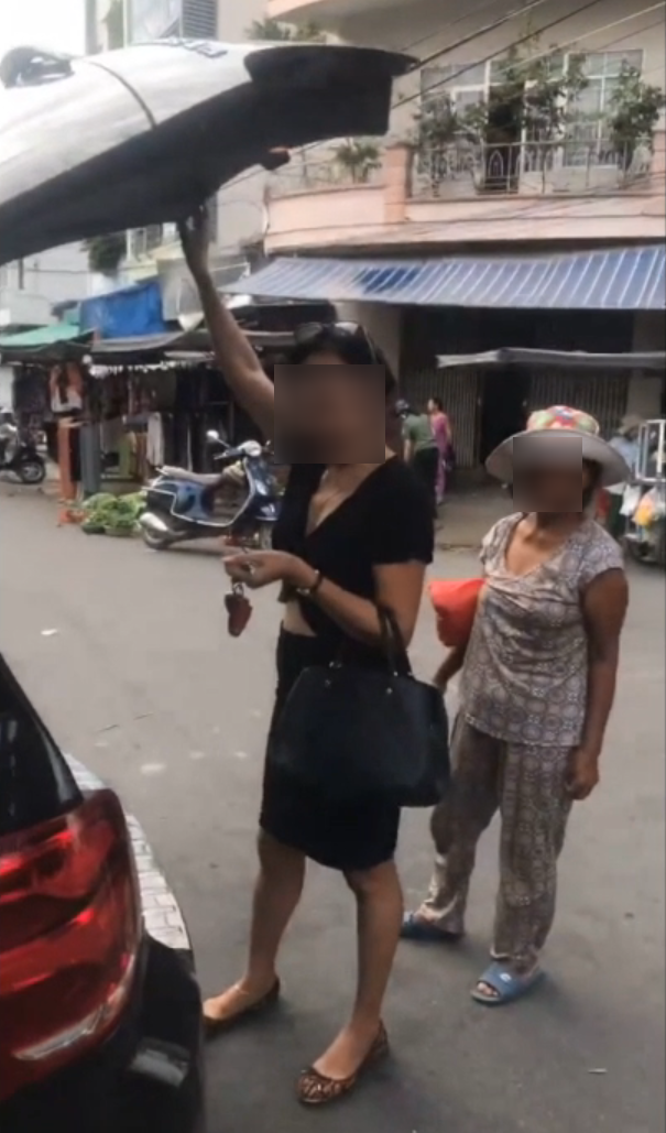 Theo đoạn clip dài gần 1 phút do tài khoản N.T.H ghi lại, chiếc xe Mercedes sang chảnh do một người phụ nữ điều khiển ngang nhiên đỗ giữa ngã tư đông người. Xung quanh rất nhiều phương tiện đi lại khó khăn tránh né chiếc xe này. Tuy nhiên, người này cũng 2 người khác vẫn an nhiên xếp đồ giống như xe đang đỗ trong sân nhà mình.