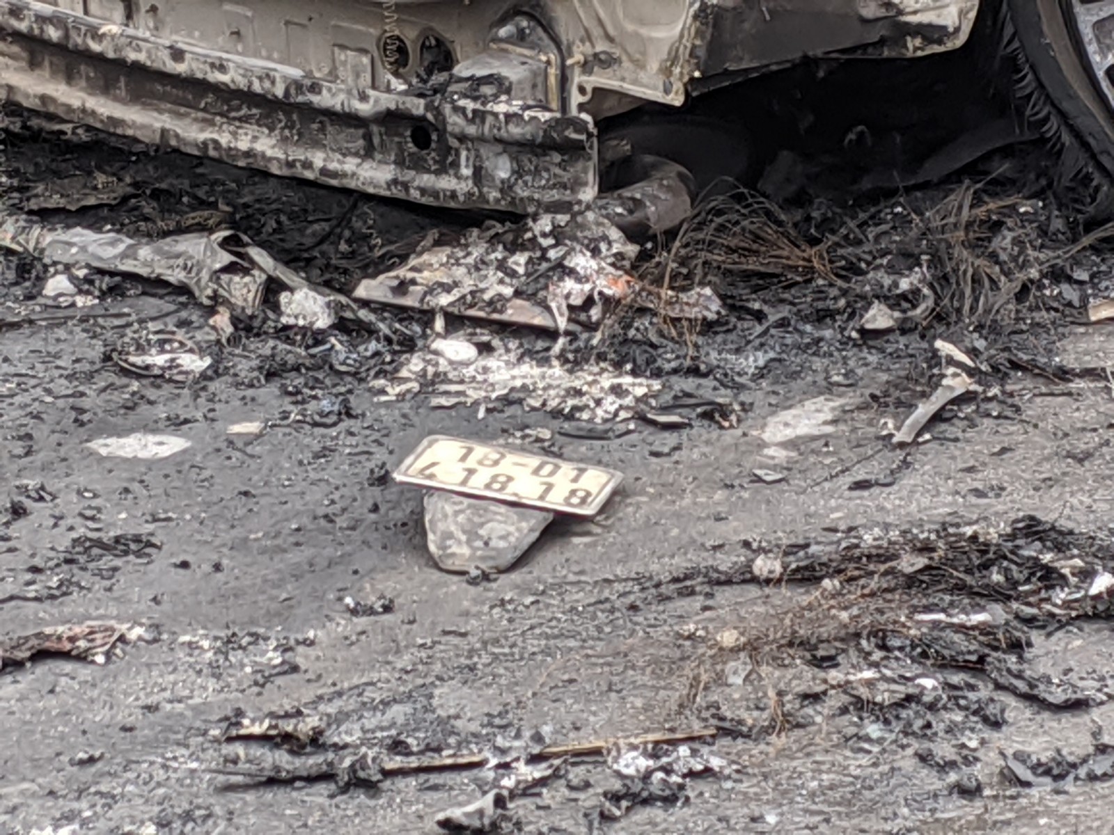 Biển số 1 xe máy còn sót lại tại hiện trường.