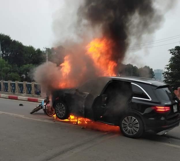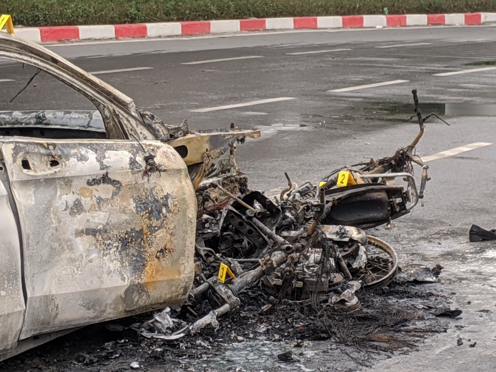 Vụ va chạm làm ôtô Mercedes và 3 xe máy và 1 xe đạp điện cháy rụi hoàn toàn. Theo cơ quan chức năng, chiếc Mercedes GLC 250 mới được mua ít ngày. Dữ liệu đăng kiểm xác định bà Thái là chủ phương tiện. Hiện công an đang tập trung xác minh làm rõ danh tính nạn nhân xấu số.