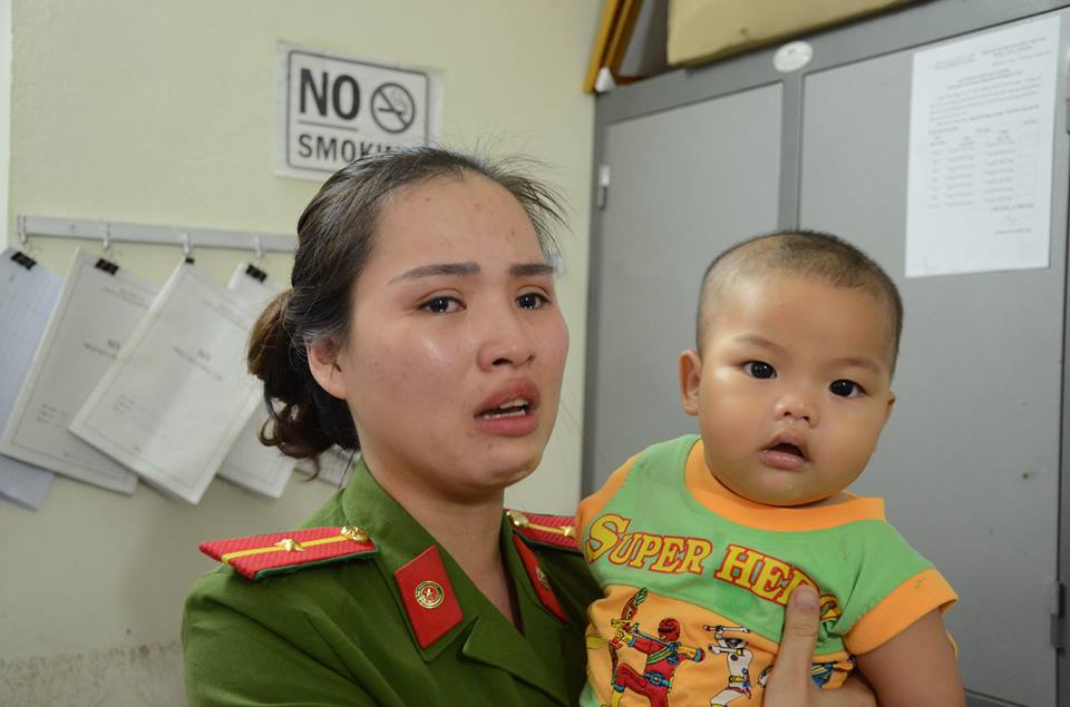 Thiếu úy Ly bật khóc lo cho cháu bé khi bị mẹ bỏ rơi.