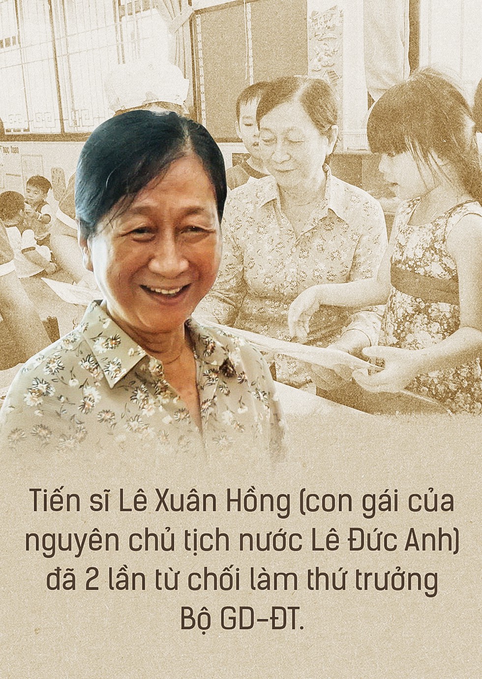 Bà Hồng (con gái của nguyên chủ tịch nước Lê Đức Anh) đã 2 lần từ chối làm thứ trưởng Bộ GD-ĐT vì quan điểm đó.