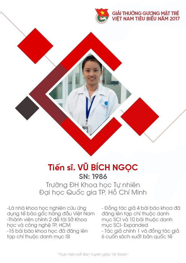 Tiến sĩ Vũ Bích Ngọc (32 tuổi), hiện công tác tại Phòng thí nghiệm Nghiên cứu và ứng dụng tế bào gốc, Trường đại học Khoa học tự nhiên (Đại học Quốc gia TP.HCM).
