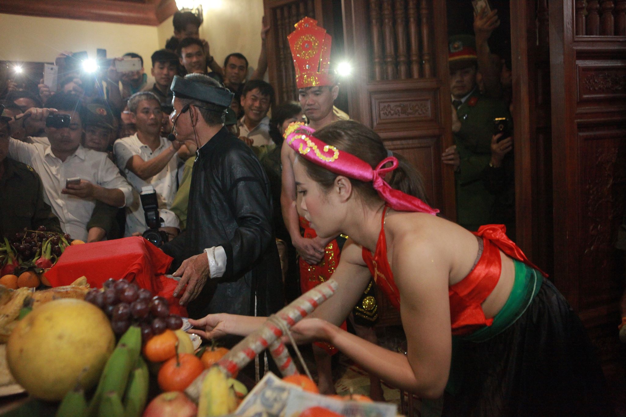 Năm nay, vợ chồng anh Chử Đức Chiến (SN 1978) và chị Bùi Thị Thanh Huyền (SN 1990) tiếp tục được người dân tín nhiệm giao nhiệm vụ thực hiện nghi thức tình phộc. Ghi nhận của PV, vào tối cùng ngày có hàng ngàn người dân địa phương đã tập trung về khu vực trước cổng ngôi miếu để vui chơi, theo dõi các chương trình ca nhạc.