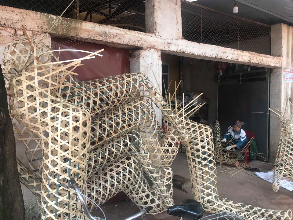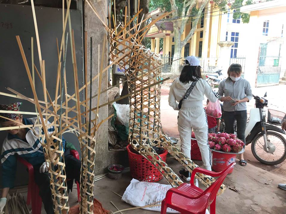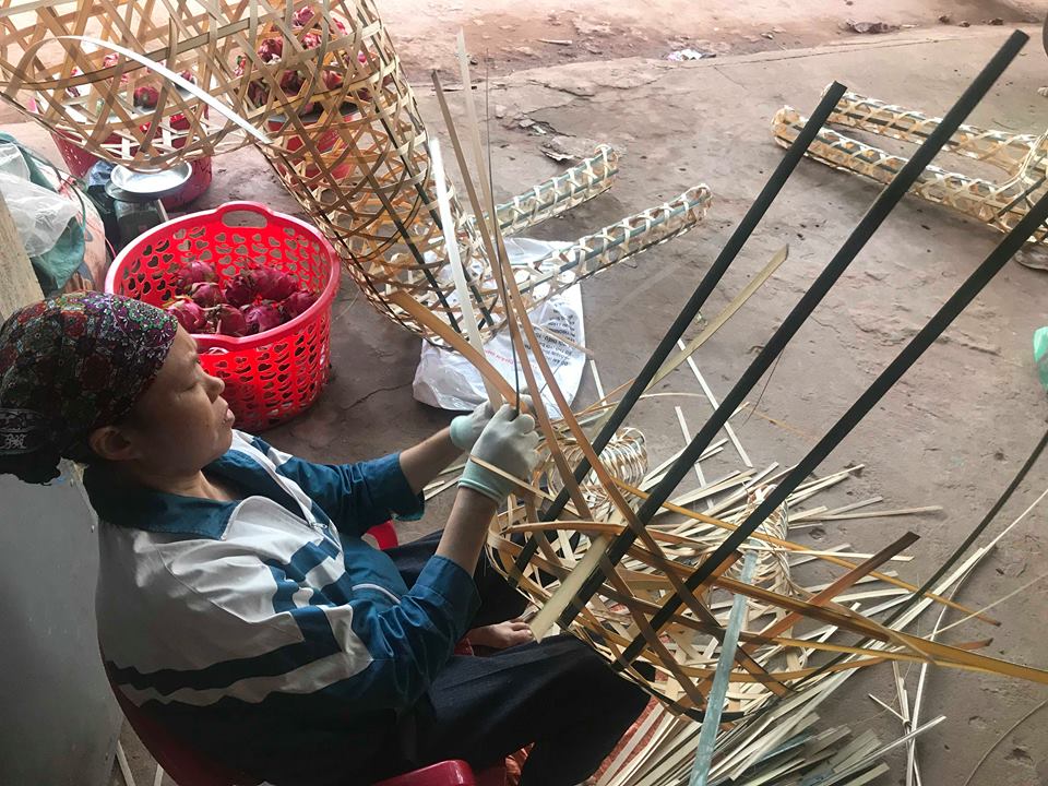 Bà Thơm (mẹ Luyện) giờ làm công việc đan ngựa vàng mã.