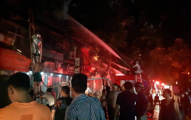 Theo thống kê có ít nhất hơn 10 ngôi nhà ở phố Đê La Thành và khu nhà trọ cho bệnh nhân nghèo lưu trú bị cháy.