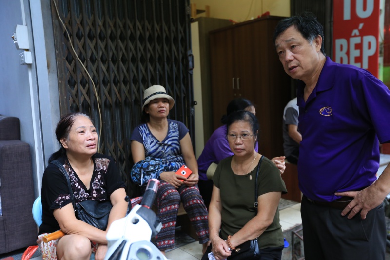 Bà Nguyễn Thị Chính (quê ở TP Hải Phòng) cho hay, hơn 1 năm nay, bà thuê trọ ở gần Bệnh viện Nhi Trung ương để điều trị bệnh tật cho cháu nội 4 tuổi bị bệnh ung thư giai đoạn cuối. Hôm qua bà để hơn 3 triệu ở nhà định rằng nay đưa cháu về quê nhưng đều bị cháy rụi. Sáng nay, bà Chính bảo con dâu bắt taxi đưa cháu về quê rồi người thân trả tiền sau. Còn bà ở lại để vào nhà xem còn vớt vát được tài sản gì không.