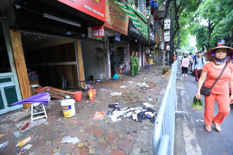 Cả biển lửa bốc lên dữ dội tại hẻm C70 nhanh chóng lan ra mặt phố Đê La Thành khiến cho hàng trăm người dân nhao nhác tháo chạy. Những nhà không kịp di dời đồ đạc, trước ngọn lửa dữ dội chỉ biết đứng nhìn bật khóc, gào thét vì toàn bộ tài sản đang bị “bà hỏa” bao vây. Ảnh hiện trường tan hoang sau vụ cháy nhìn từ trên cao.