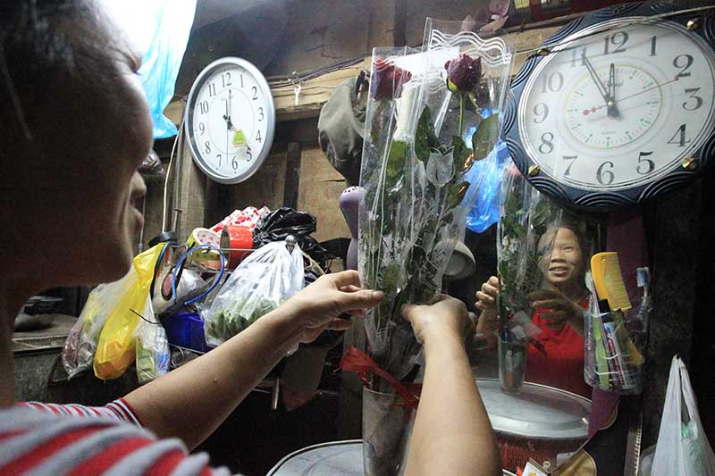 Không giấu nổi niềm xúc động, chị Tường (Xuân Trường, Nam Định) dù mới đi làm về liền vội vã tìm một góc trang trọng nhất trong căn phòng trọ tồi tàn của mình để cắm hoa, với những người lao động nghèo như chị Tường, món quà giúp các chị cảm thấy mình được trân trọng hơn trong cuộc sống mưu sinh vất vả thường nhật.