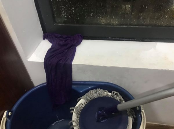 Gia đình chị M. phải huy động hết khăn lau sàn nhà.