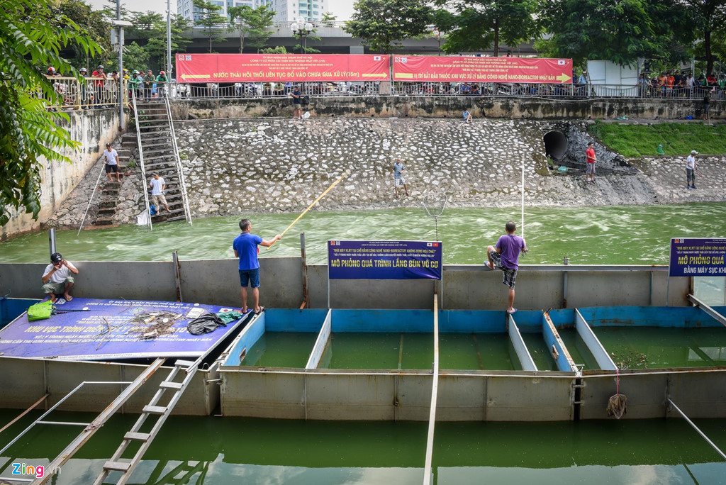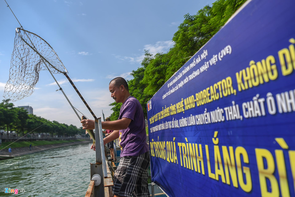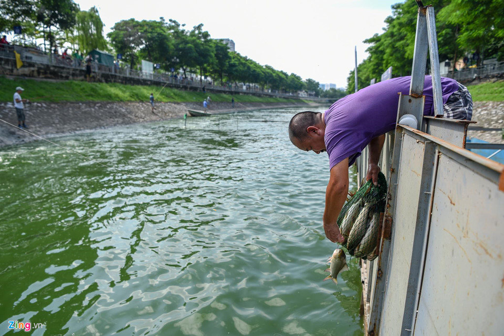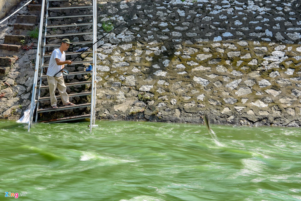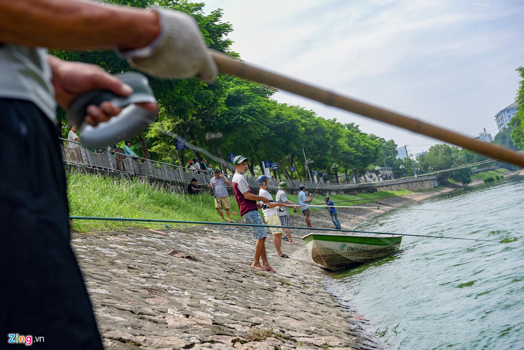 Ông Tuấn (người dân sinh sống cạnh khu vực) cho biết: “Những hôm nước sông đen kịt, bốc mùi hôi thối nên chẳng ai dám câu cá ở đây. Nhưng vài hôm nay mưa lớn, cùng lúc hồ Tây xả nước nên sông sạch hơn hẳn, vì vậy tôi mới rủ vài người bạn về đây đánh cá.”