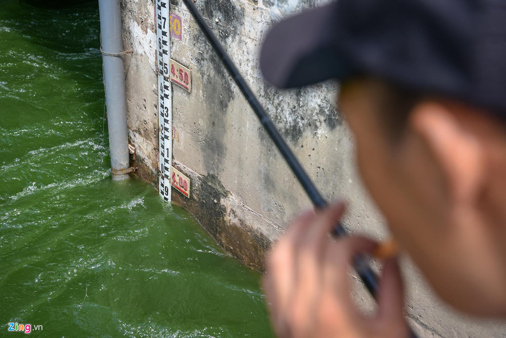 Khoảng 11h sáng cùng ngày, mực nước sông Tô Lịch đo được đã gần chạm ngưỡng 4 m.