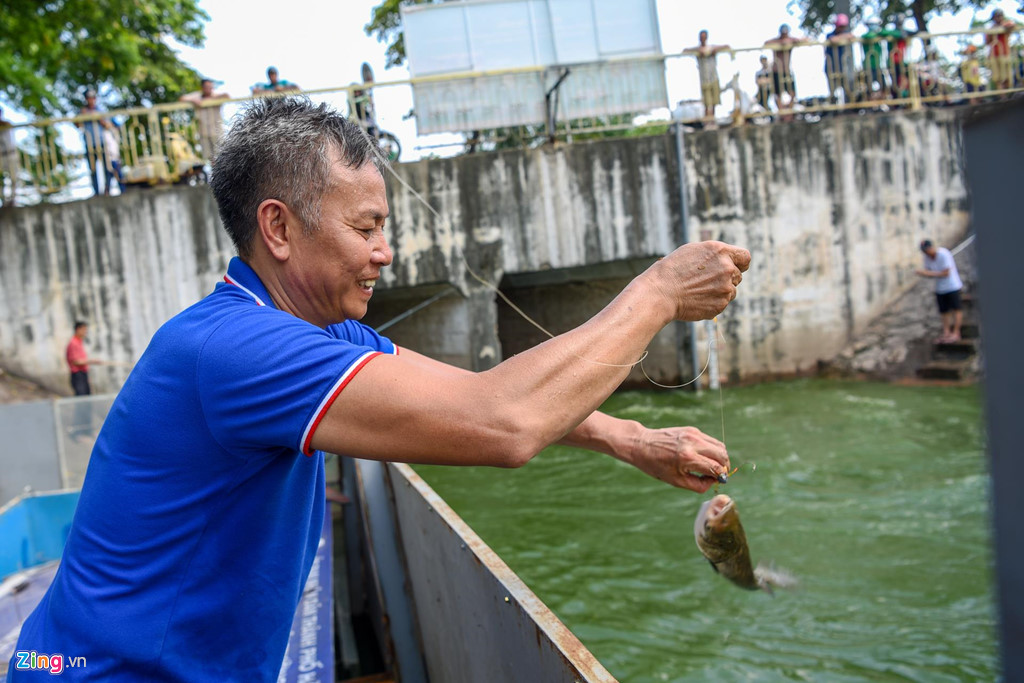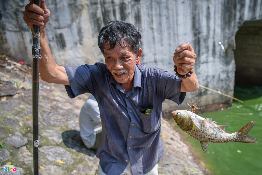 Câu được một con cá mè, ông Hồng lập tức thả lại xuống dòng sông. Ông cho biết, cá mè thường rất tanh, dân đi câu rất ít khi lấy.