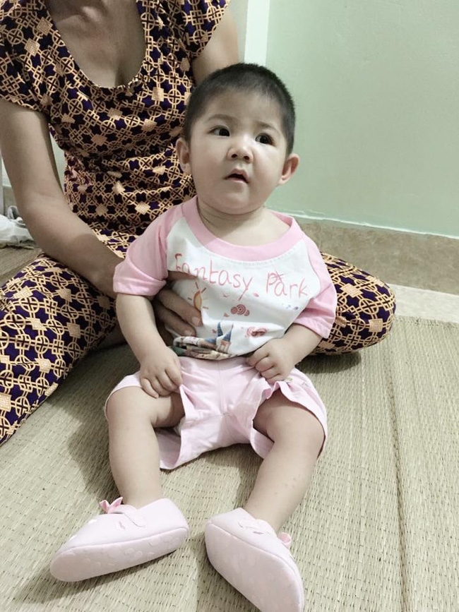 Yến Nhi được mẹ nuôi Thanh Tâm chăm sóc, hình ảnh hiện tại của bé bụ bẫm, phản xạ tốt hơn trước rất nhiều